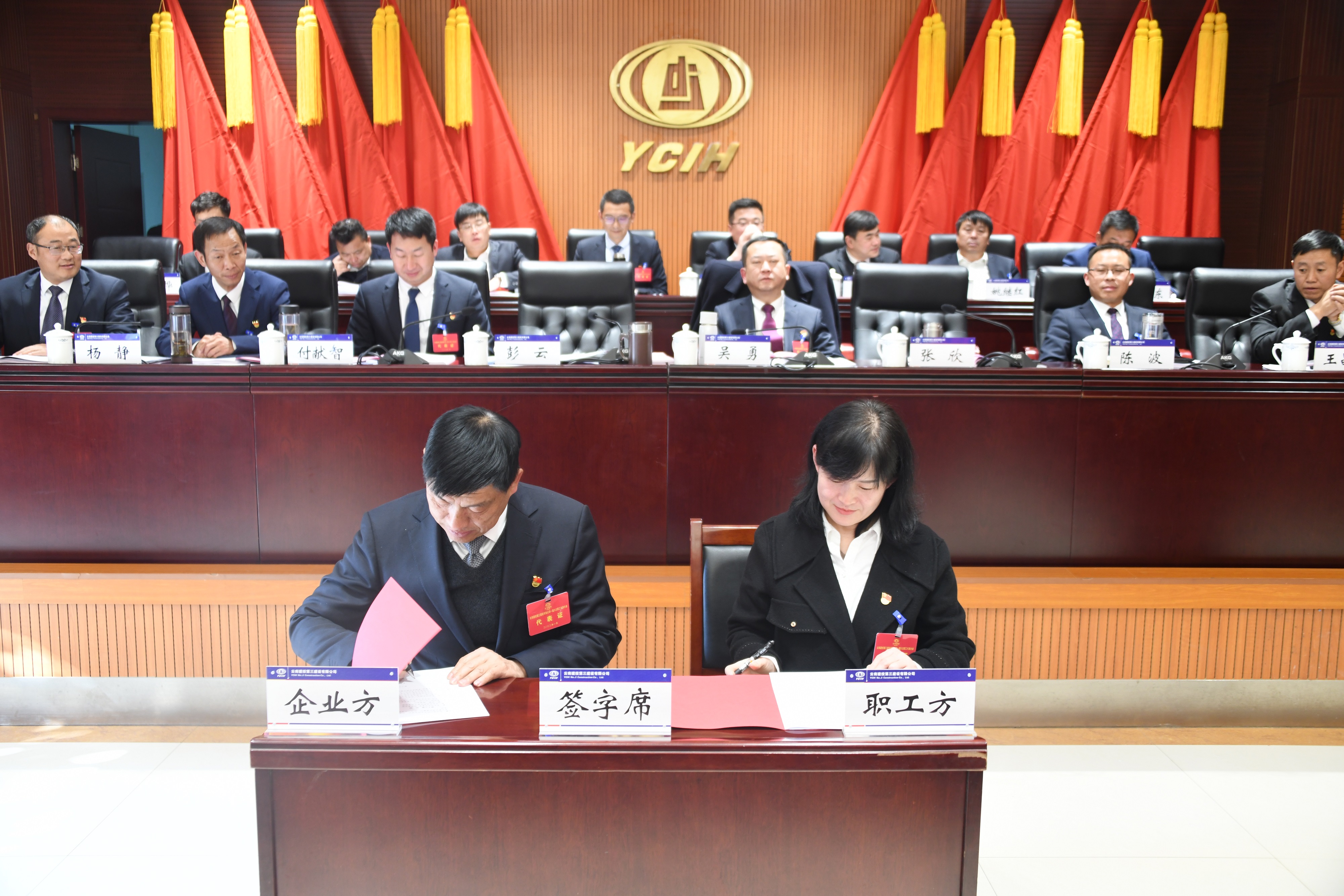 會(huì)上,彭云和張欣分別代表企業(yè)方和職工方簽訂了《2022年集體合同》。