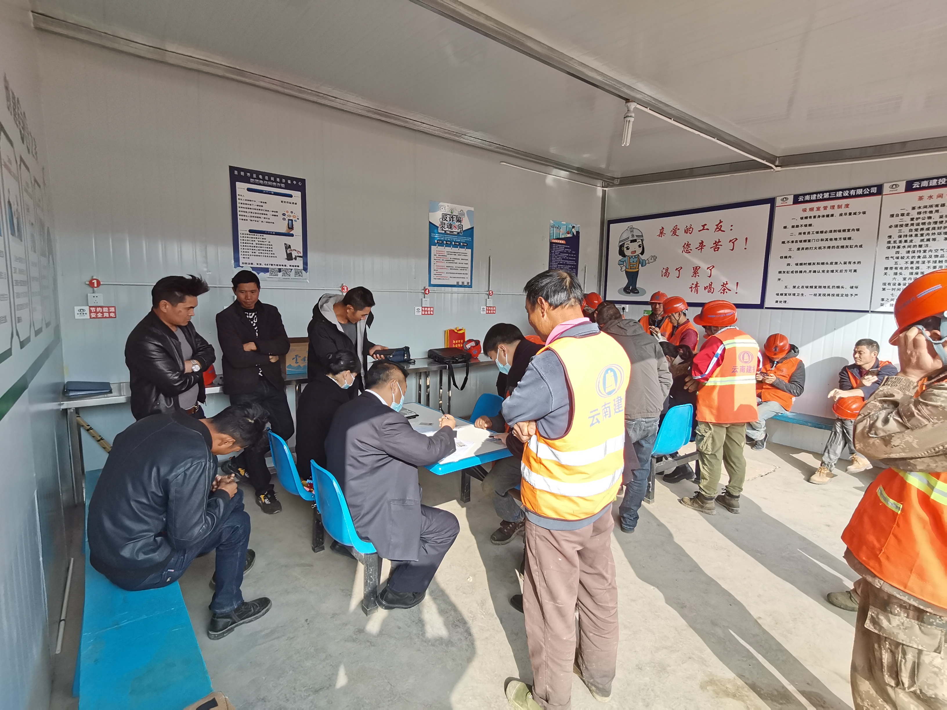 近日,第三項(xiàng)目經(jīng)理部結(jié)合“我為群眾辦實(shí)事”實(shí)踐活動(dòng),在西南林業(yè)大學(xué)石林職業(yè)技術(shù)學(xué)院基礎(chǔ)設(shè)施建設(shè)項(xiàng)目部約請(qǐng)石林農(nóng)村信用社到項(xiàng)目工地為農(nóng)民工現(xiàn)場(chǎng)辦理云建寶工資卡。