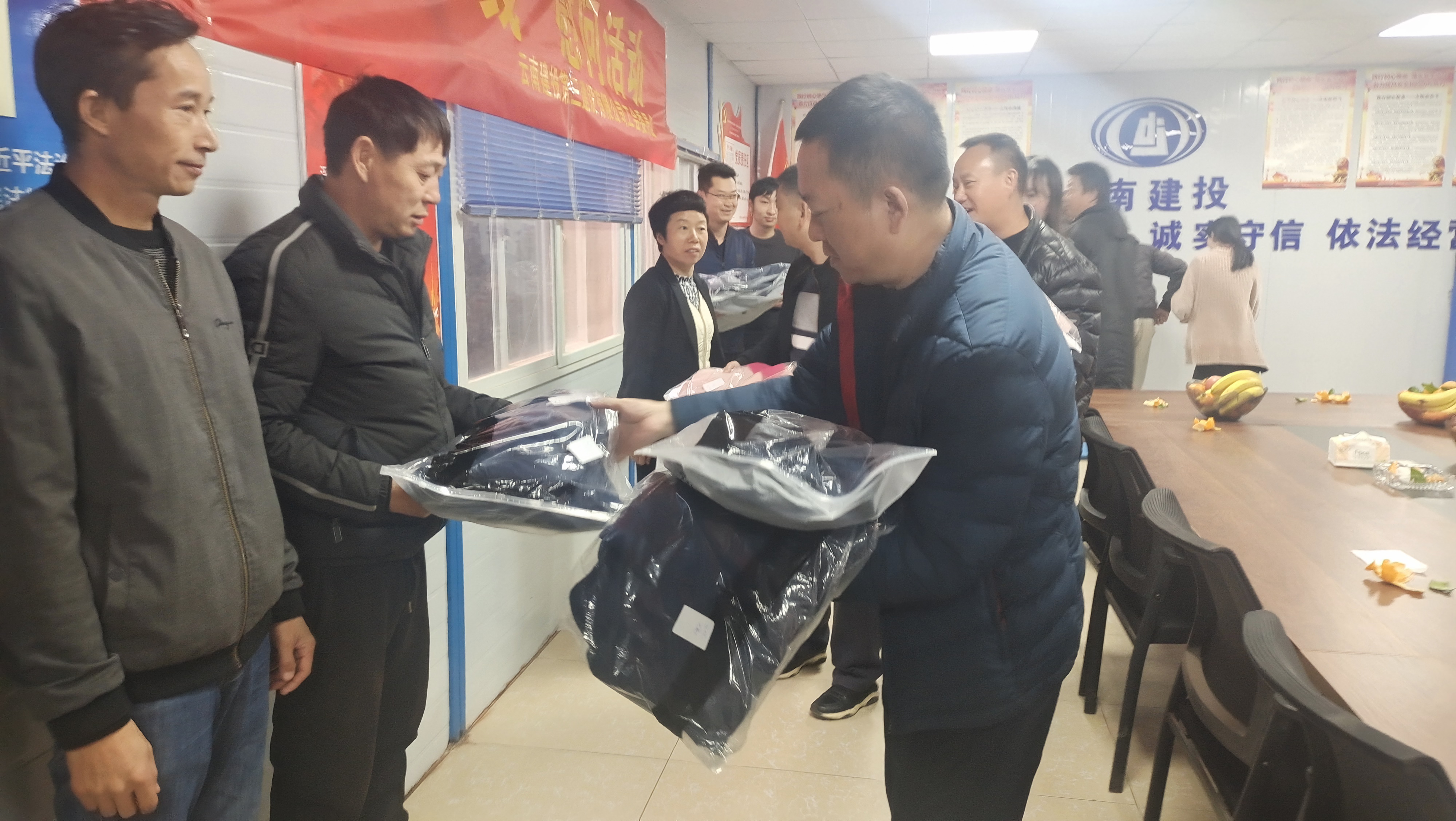 隨后,項目部開展搶水游戲,孔維國為一線職工發放毛毯、羽絨沖鋒衣等過冬用品代表公司送去親切慰問。