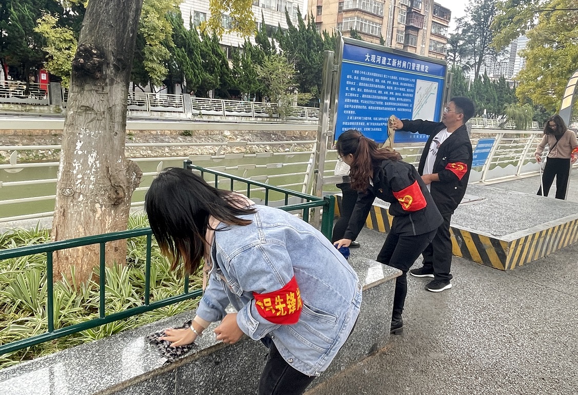 第一項目經理部團支部與第四直管項目部聯合開展“喜迎COP15大會,爭做文明青年”,多名團員青年志愿者來到大觀河沿岸,積極清理周邊環境衛生,以親身實踐參與到生態環保實踐志愿活動中。