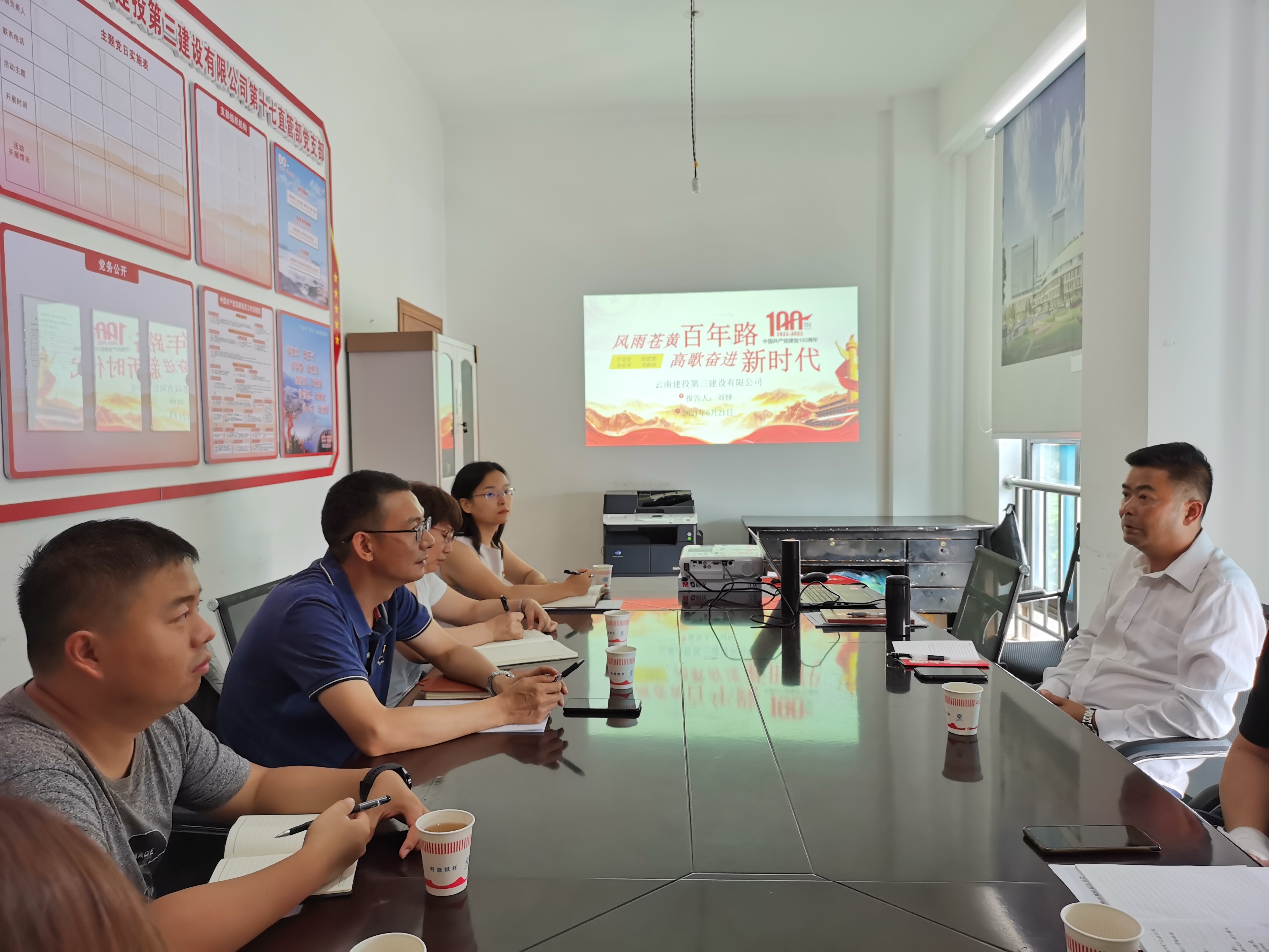 6月26日,公司黨委委員、副總經理陳波以《學黨史悟初心 奮進新征程》為題,在公司機關第二會議室講授黨史學習教育專題專題黨課。公司市場開發部、第一項目經理部、第五直管項目部、第七直管項目部、第十一直項目管部黨支部在昆27名黨員參加此次專題黨課。