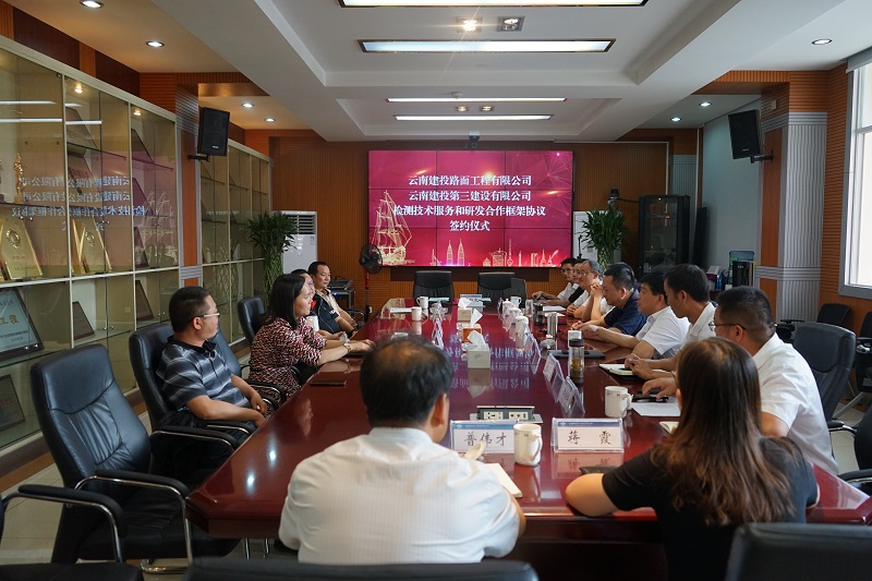 5月19日,公司與云南建投路面工程有限公司簽署戰(zhàn)略合作協(xié)議,雙方擬在路基路面試驗(yàn)檢測(cè)、科技研發(fā)和成果轉(zhuǎn)化、人才培養(yǎng)等方面開展合作交流。三公司黨委書記、董事長(zhǎng)吳勇、路面公司董事長(zhǎng)徐志勇帶隊(duì)參加,雙方總經(jīng)理代表公司簽訂戰(zhàn)略合作協(xié)議。