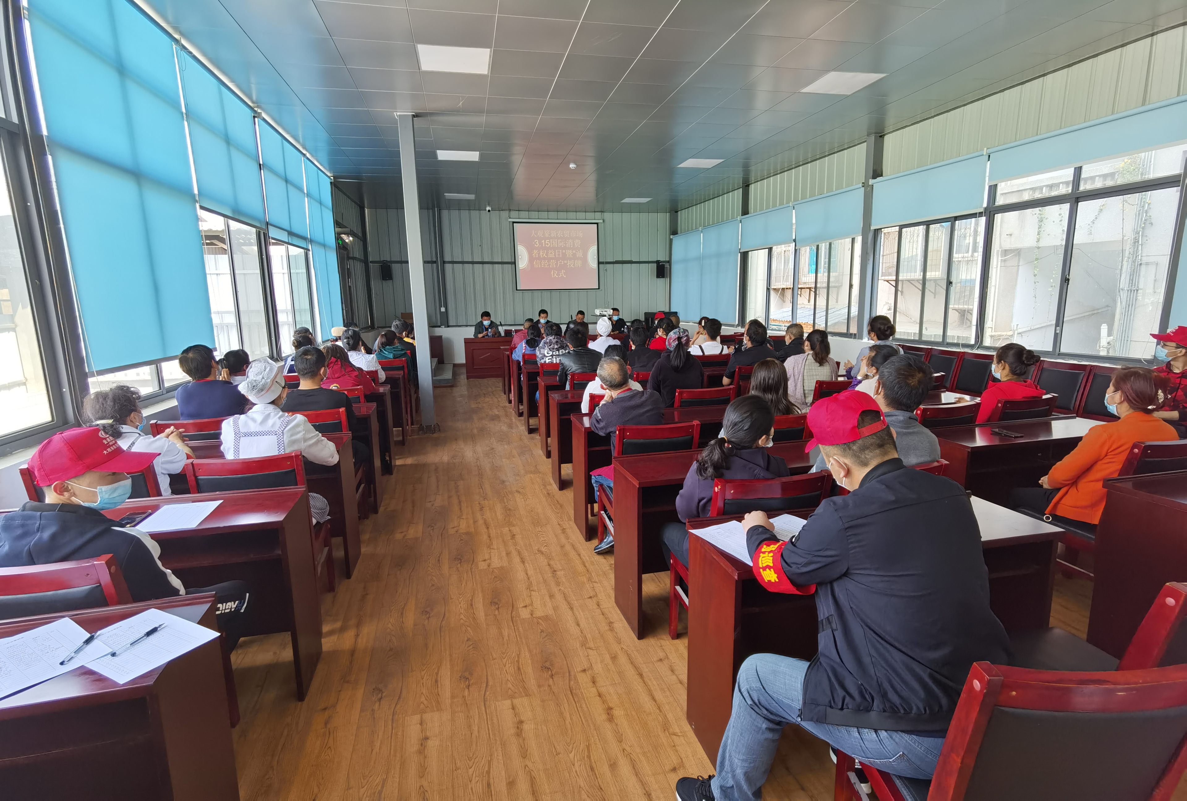下午15時,在市場三樓會議室,組織市場部分經營戶代表召開了“3·15國際消費者權益日”暨“誠信經營戶”表彰大會。會上,為獲選的40家誠信經營戶頒獎。公司資產管理部經理鄭皓予表示,感謝所有商戶對市場提升改造工作、疫情防控工作的支持、對誠信經營的堅守。同時強調,“誠信經營戶”的稱號既是榮譽,也是責任,希望受到表彰的經營商戶繼續堅持誠實守信的高尚品格,在經營活動中要做到一手抓疫情防控,一手抓文明誠信經營,自覺營造“重誠信、講文明、守誠信”的良好經營氛圍,積極發揮先進典型的示范引導作用,攜手將大觀篆新農貿市場打造成為政府放心、百姓喜愛的購物圣地。