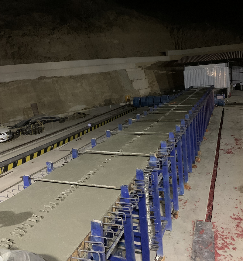 據悉,小石城特大橋T梁預制場分為鋼筋綁扎區、半成品存放區、預制區等。梁場規劃布置21個臺座,月生產能力40-45片,負責生產小石城特大橋485片30mT梁。