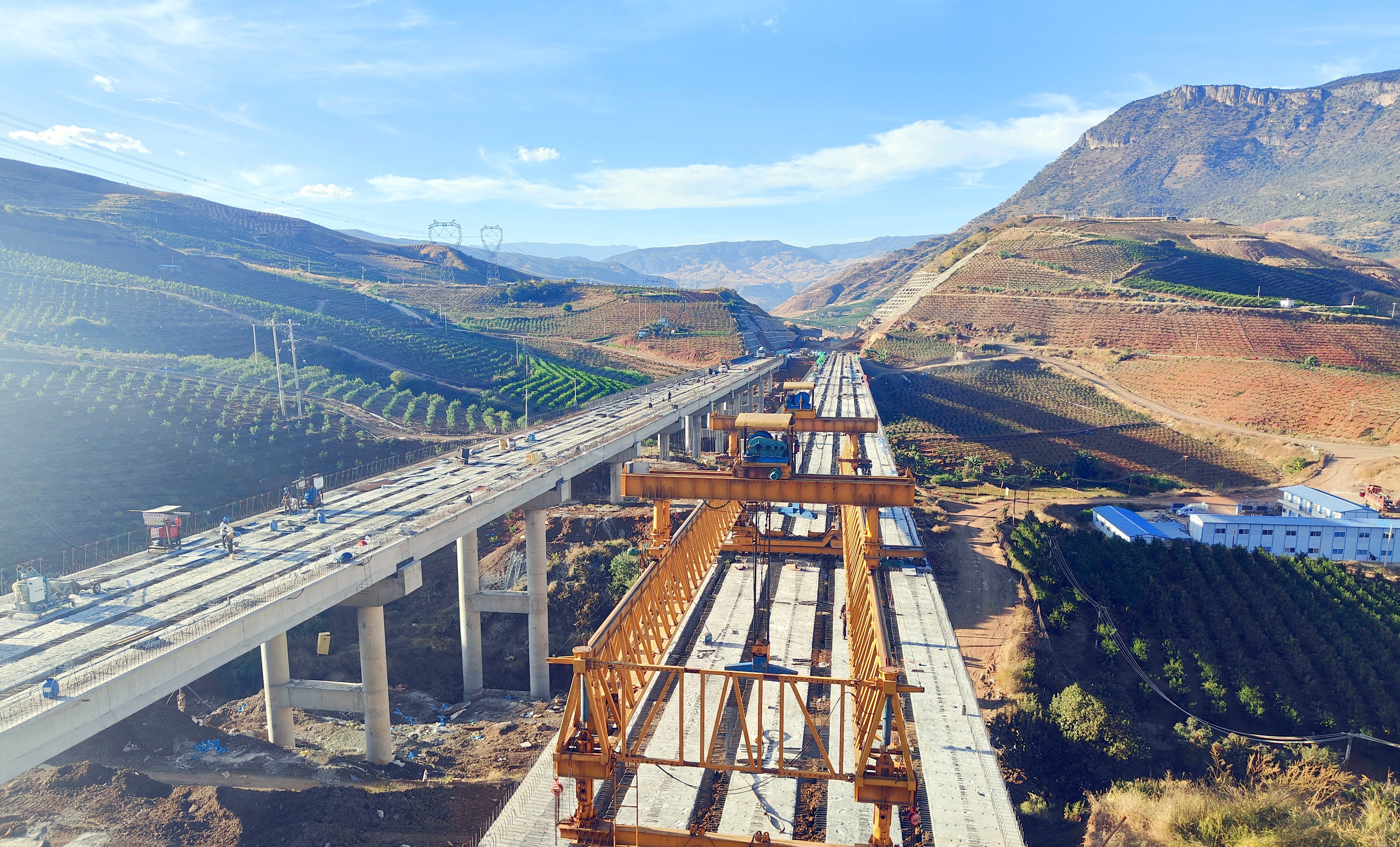 在集團(tuán)“大干50天 決勝全年度”的沖鋒號角下,項(xiàng)目部按照年底通車要求,上下聯(lián)動推動工作提質(zhì)增效,結(jié)合實(shí)際情況倒排工期,找問題、攻難點(diǎn),加大人力物力投入,狠抓施工銜接、層層分解任務(wù),在保證安全、質(zhì)量的前提下全力加快整體施工進(jìn)度,在總包單位10月份的進(jìn)度考核中排名全線第一。香草坪箐1、2號大橋的全幅順利架通,不僅為后續(xù)橋面濕接縫施工、橋面鋪裝、轉(zhuǎn)序移交等工序的順利開展打下基礎(chǔ),也為實(shí)現(xiàn)年底全線通車目標(biāo)創(chuàng)造了有利條件。