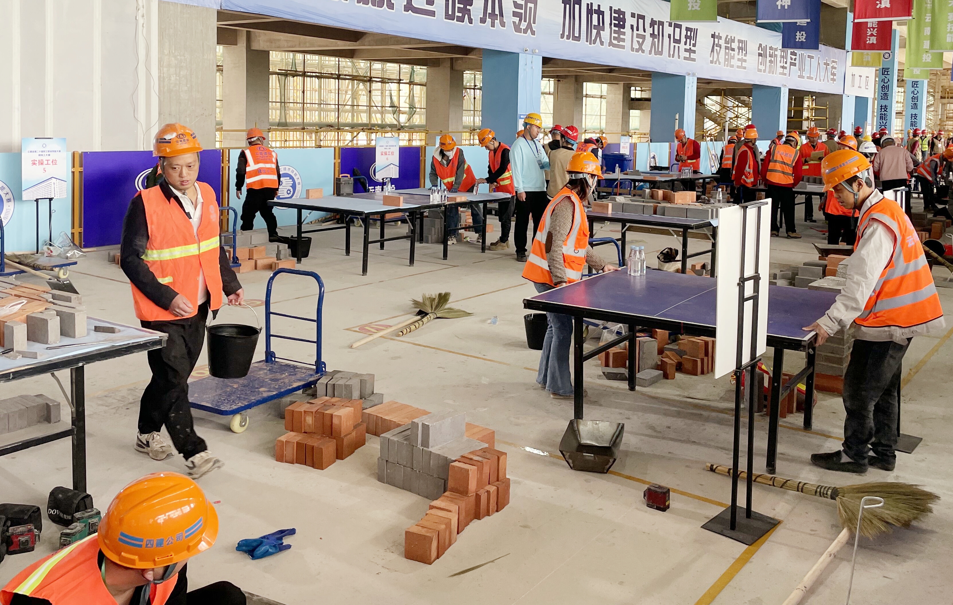 本次競(jìng)賽以“匠心創(chuàng)造 技能興滇”為主題,分理論和實(shí)操兩部分,主要考核參賽選手對(duì)砌筑基礎(chǔ)、安全規(guī)范及勞動(dòng)權(quán)益保護(hù)等理論知識(shí)的掌握程度和磚塊砌筑的實(shí)際操作水平。公司共選派1名農(nóng)民工代表參加,與來(lái)自全省各地的23支參賽隊(duì)伍共30名選手同場(chǎng)競(jìng)技,展開(kāi)激烈角逐。