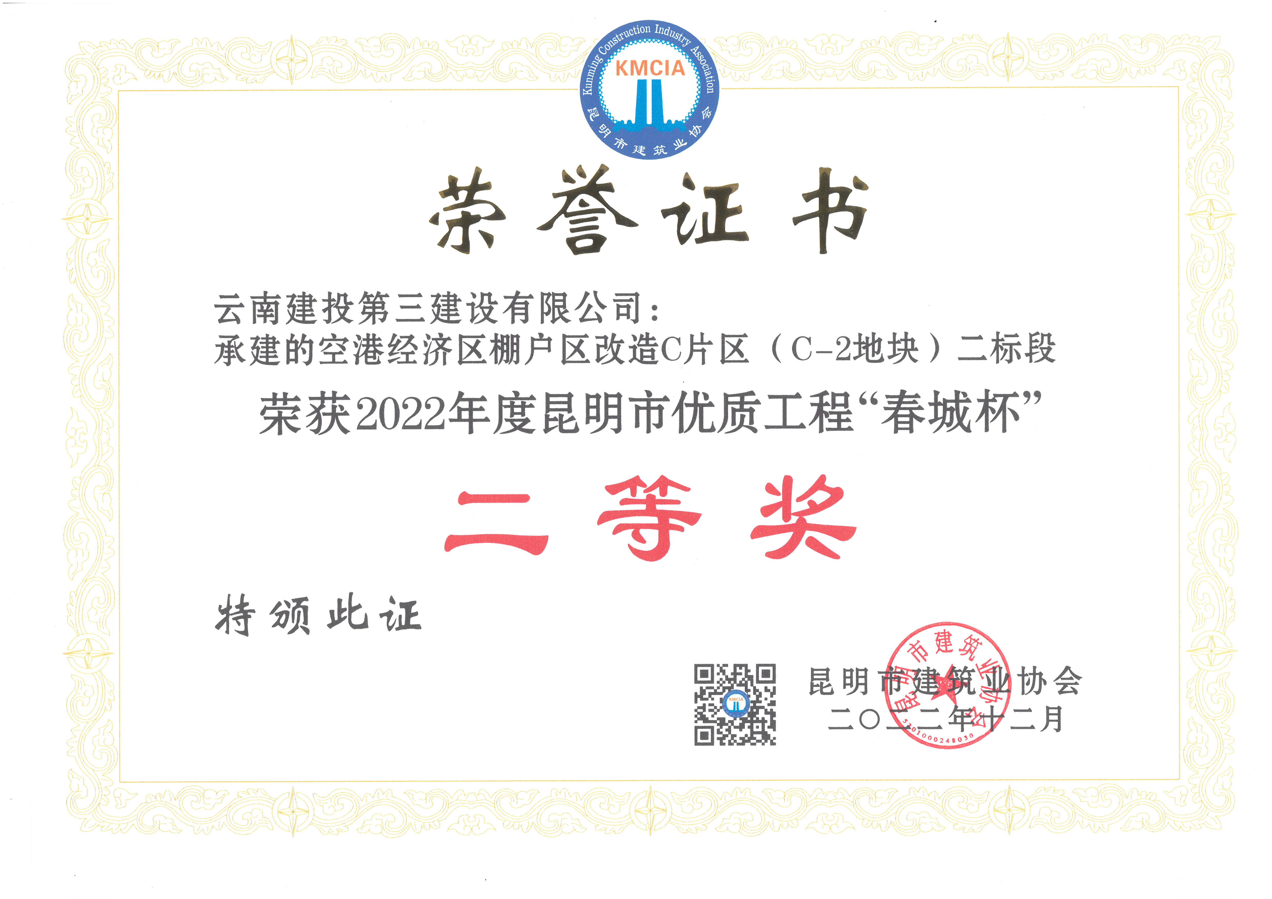 公司被評(píng)為2022年度昆明市建筑業(yè)“先進(jìn)企業(yè)”和“質(zhì)量管理優(yōu)秀企業(yè)”,公司黨委書記、董事長(zhǎng)彭云被評(píng)為2022年度昆明市建筑業(yè)“優(yōu)秀企業(yè)家”,公司技術(shù)質(zhì)量管理部沈雁波、朱家虎被評(píng)為2022年度昆明市工程建設(shè)行業(yè)“優(yōu)秀工作者”。公司已連續(xù)五年被評(píng)為昆明市建筑業(yè)“先進(jìn)企業(yè)”和“質(zhì)量管理優(yōu)秀企業(yè)”。