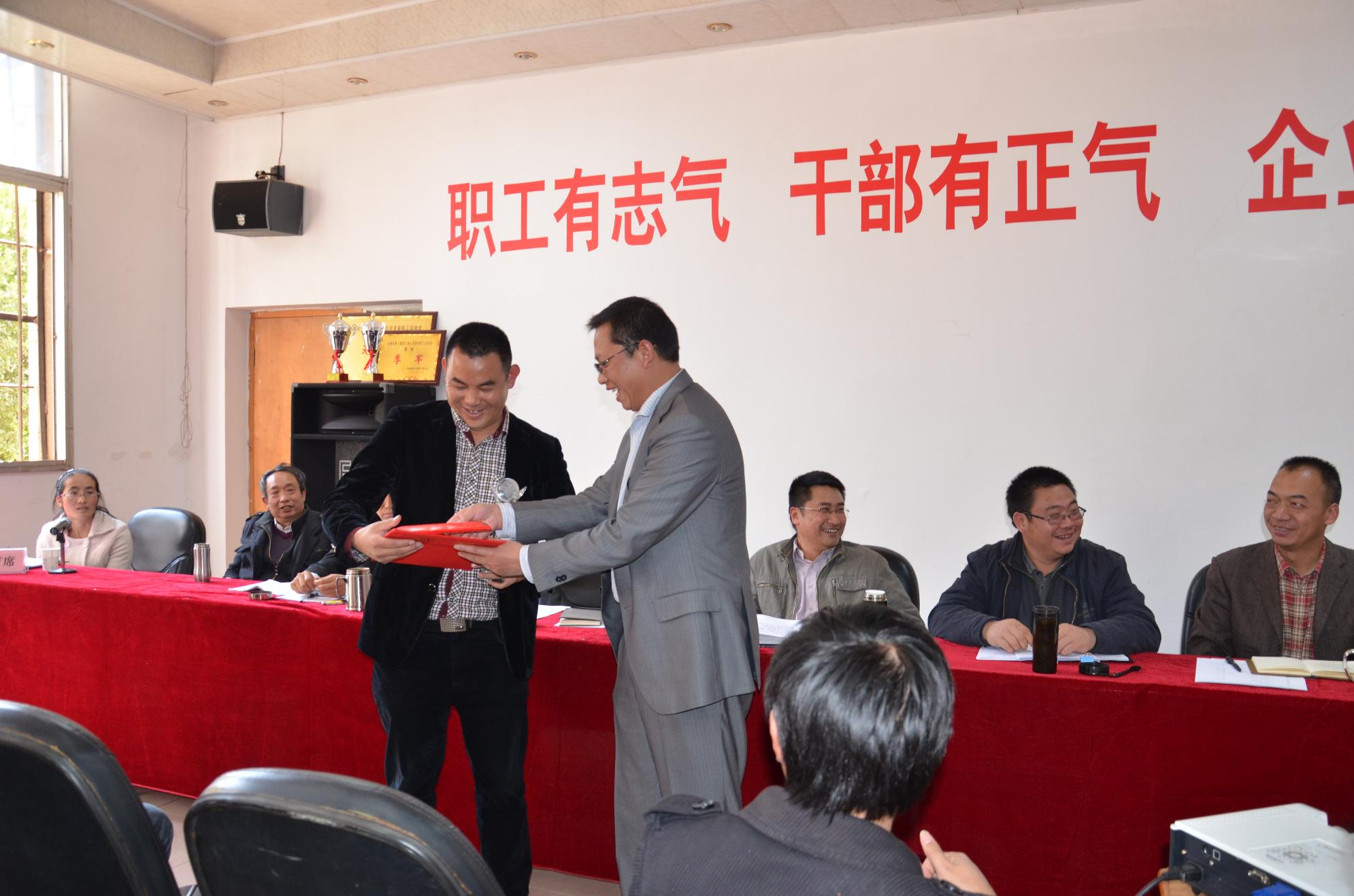 ? ? 一大早,在安裝分公司宣傳欄前就圍滿了看表彰紅榜及年底檢查項目打分情況的職工,職工群眾紛紛對獲表彰的項目表示祝賀,臉上揚溢著節(jié)日的喜慶與歡樂。會議開始分公司黨支部書記付廷亞向職工匯報了安裝分公司2013年黨建工作、群眾工作開展情況。隨后各口分管領(lǐng)導(dǎo)總結(jié)2013年工作并對2014年工作進行安排部署。獲表彰的優(yōu)秀項目代表、優(yōu)秀職工代表和“五好家庭”家屬代表上臺發(fā)言。優(yōu)秀項目分專業(yè)進行經(jīng)驗交流,以PPT展示,形象生動直觀。卓有成效的管理,先進施工經(jīng)驗,讓在場的職工,嘖嘖稱贊,到中午12點多,還聽得津津有味。