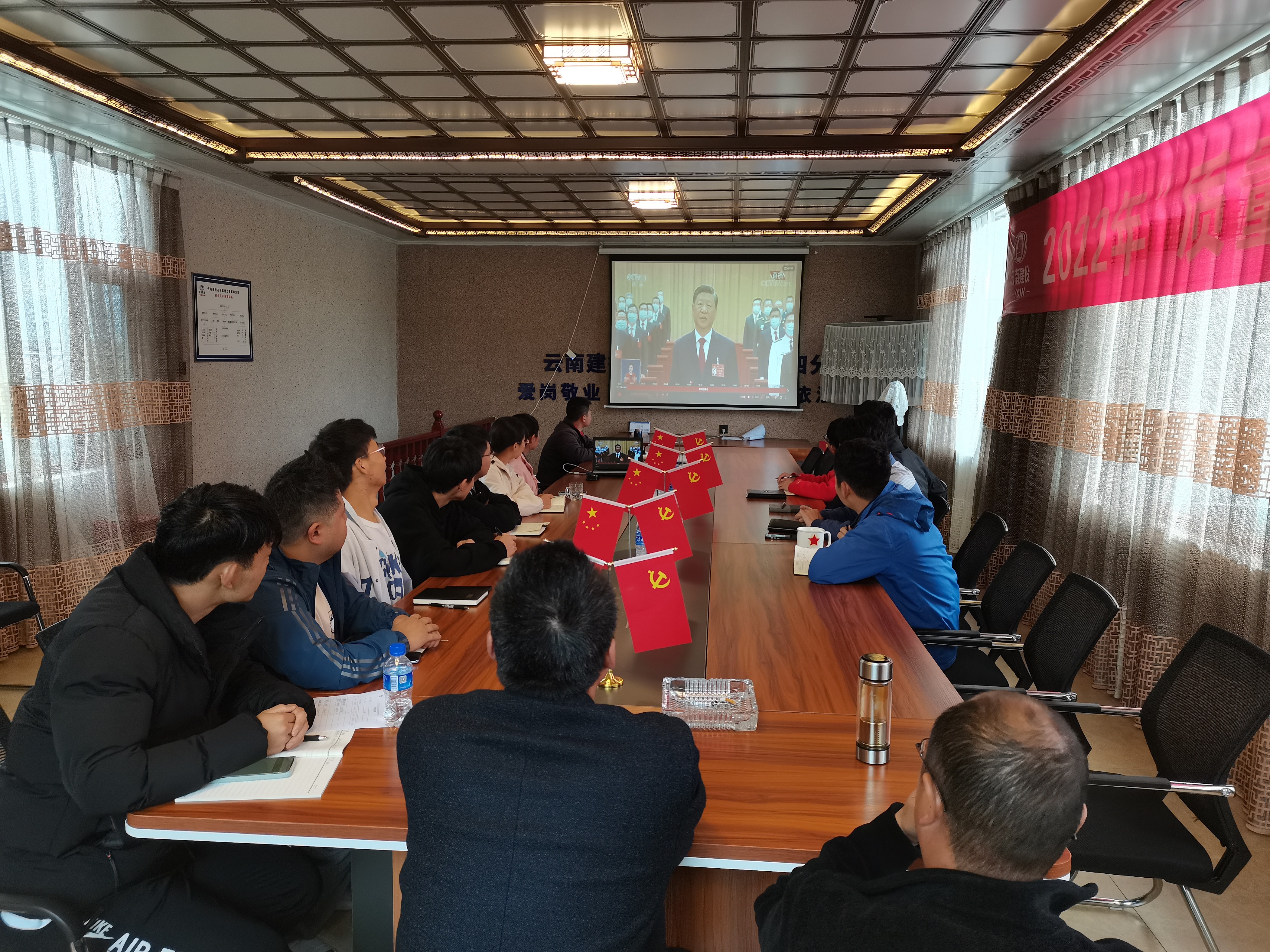 上午10點(diǎn),大家統(tǒng)一到一號會議室觀看中國共產(chǎn)黨第二十次全國代表大會開幕式。