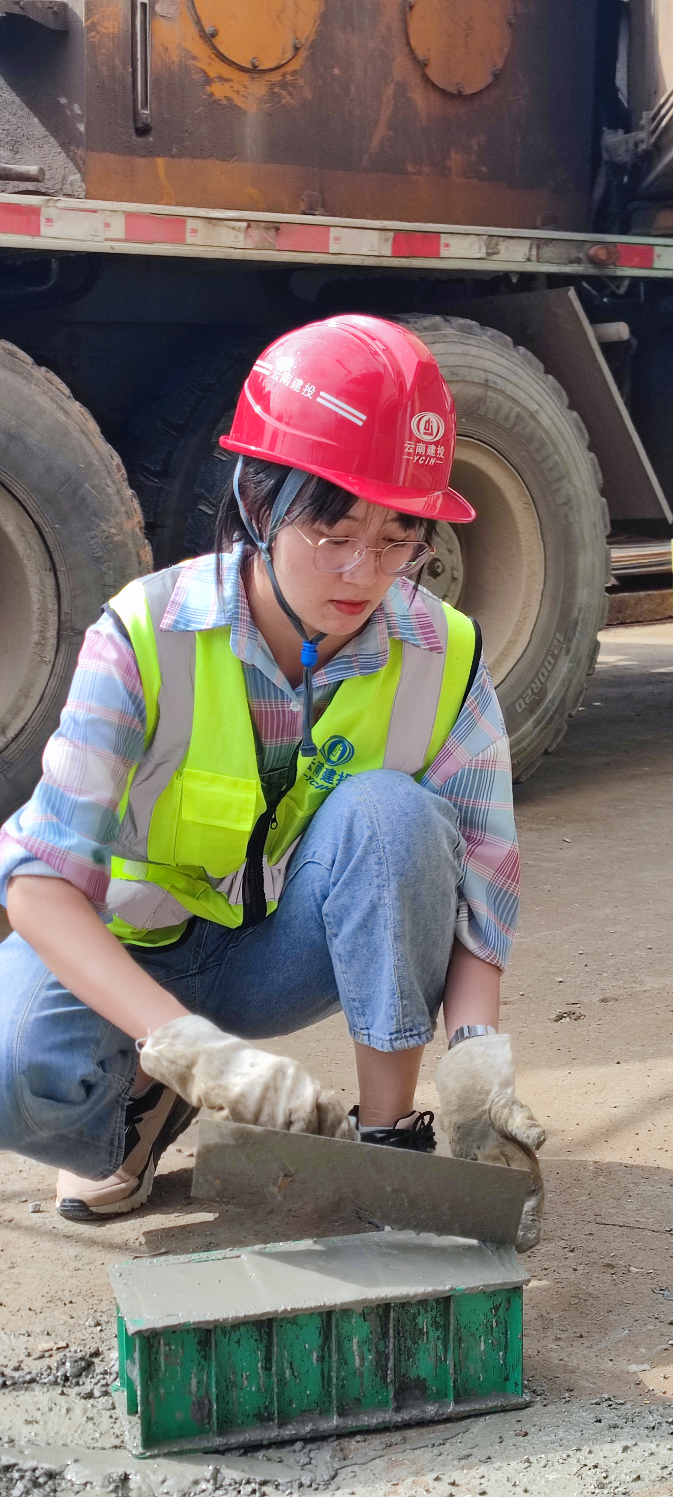 來到直管部第二個星期,師傅說:“走!今天上工地做實體檢測?!贝┥戏垂獗承?,戴上安全帽,就來到了干得熱火朝天的先行地塊。1棟工長配合我們一起打回彈,我在旁邊記錄數據。當他摘下口罩:驚鴻一瞥,亂我心曲!就這樣,我不僅在這里得到了工作,也收獲了愛情。