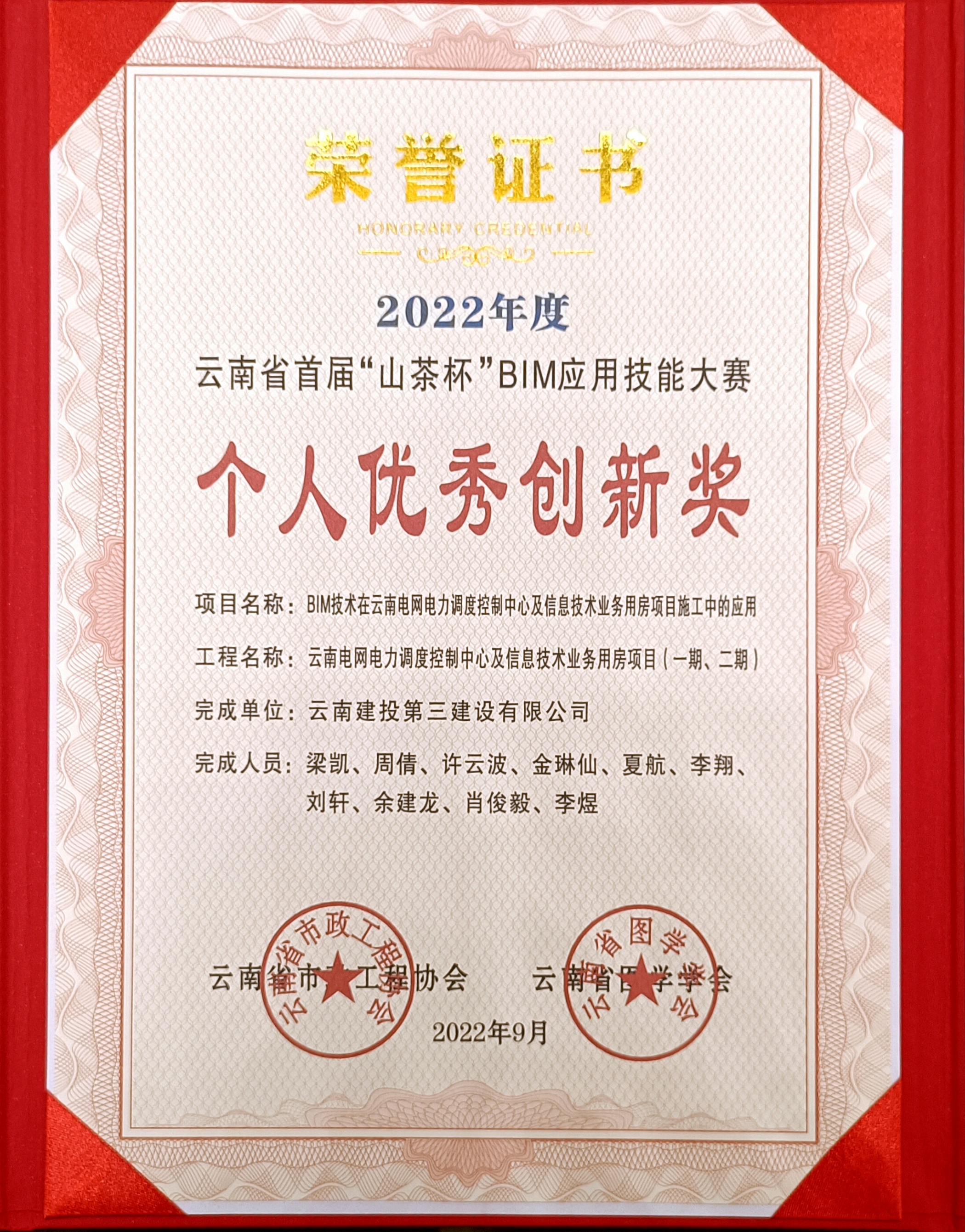 9月23日,云南省首屆“山茶杯”BIM應(yīng)用技能大賽頒獎(jiǎng)典禮在溫德姆酒店舉行,公司榮獲施工組二等獎(jiǎng),“云南電網(wǎng)電力調(diào)度控制中心及信息技術(shù)業(yè)務(wù)用房項(xiàng)目(一期、二期)”作為本次參賽項(xiàng)目榮獲了北京中建協(xié)認(rèn)證的數(shù)字工程認(rèn)證“金級(jí)”和BIM應(yīng)用案例“一等獎(jiǎng)”,相關(guān)完成人員榮獲“個(gè)人優(yōu)秀創(chuàng)新獎(jiǎng)”。