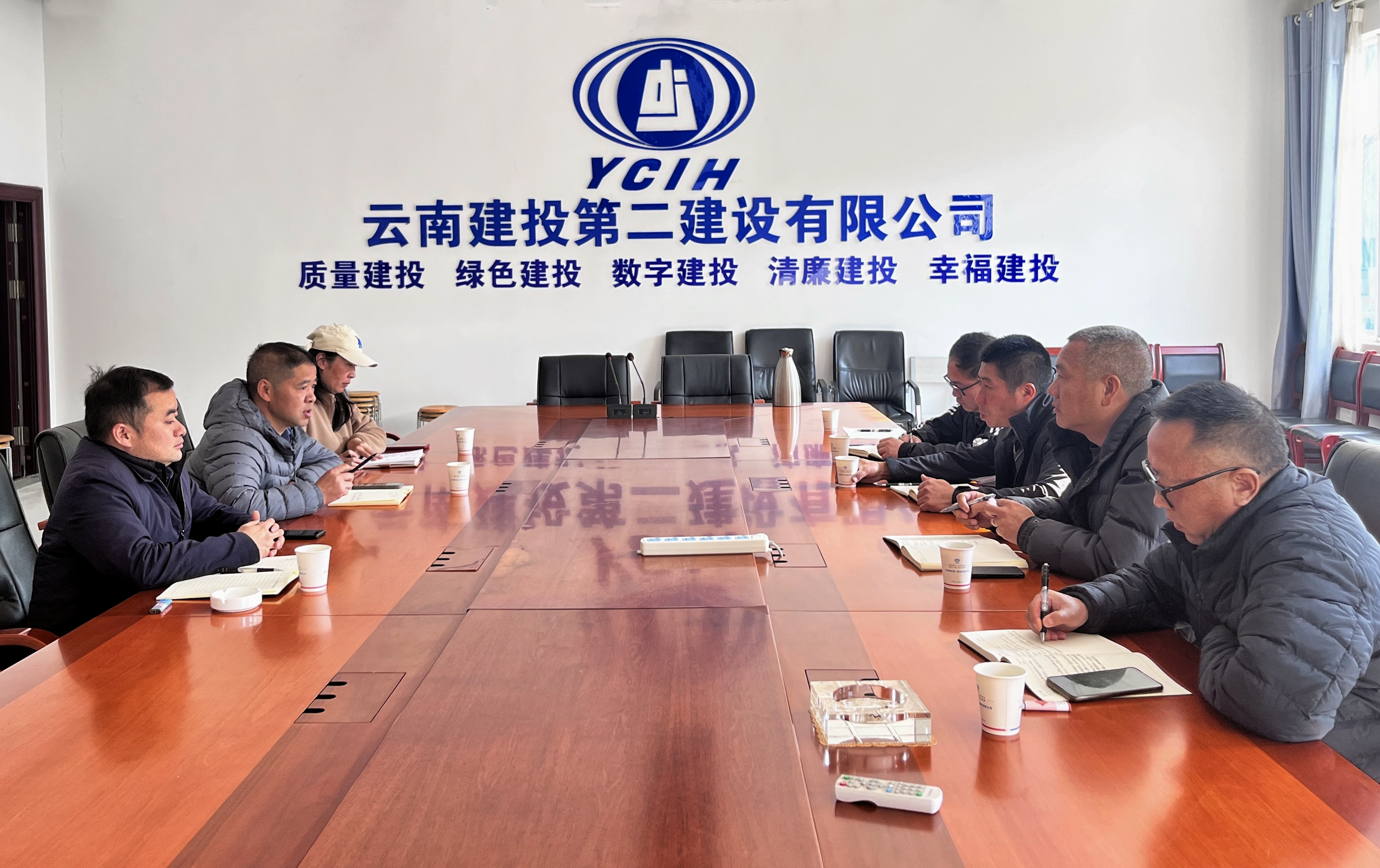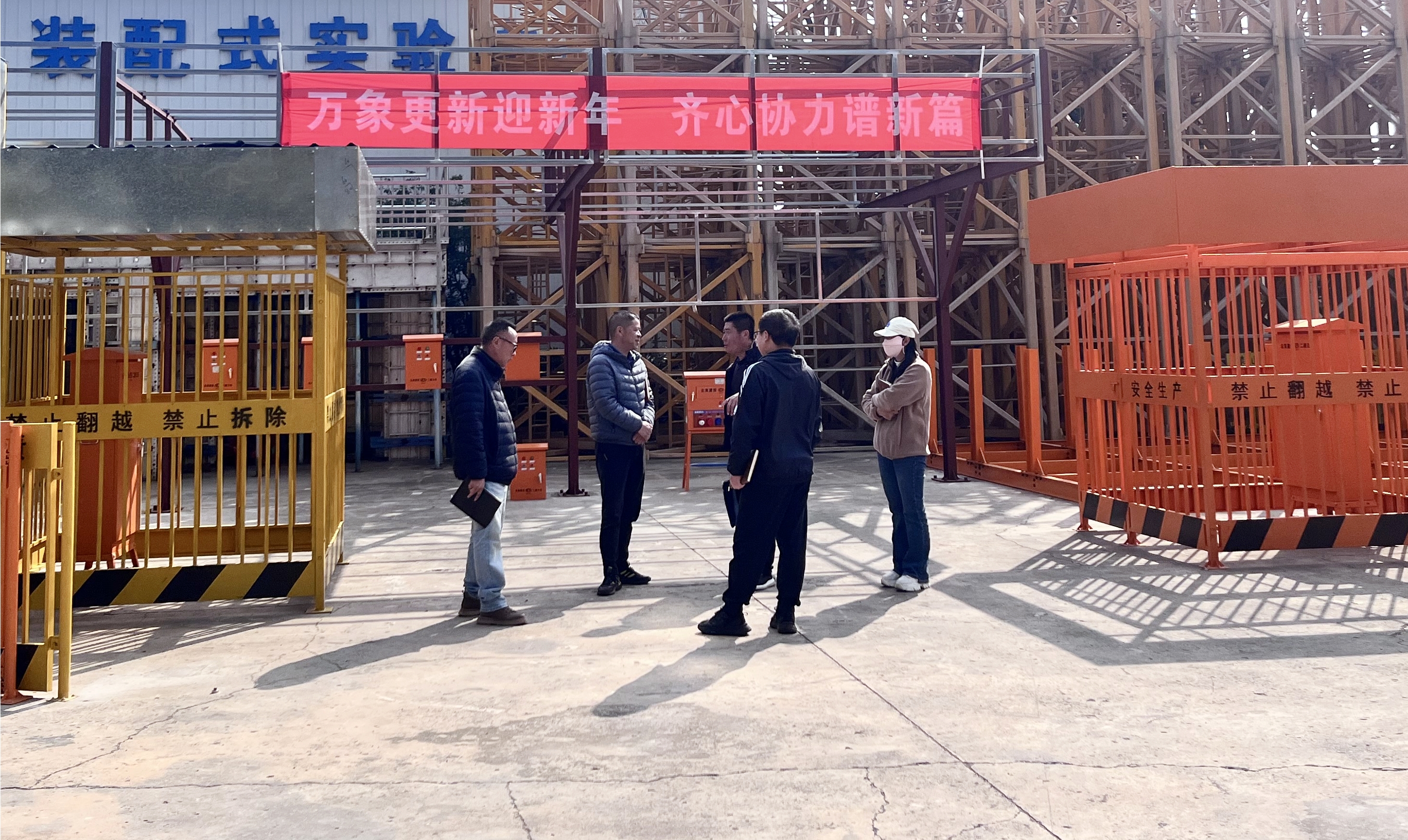 會上,雙方分別對各自人員配置、資產數量、業務結構、管理成本等方面進行介紹,隨后到現場觀摩標準化工具式設施,過程中交流質量控制、庫存管理、成本控制核算等工作,并探討存在的難點和痛點問題。