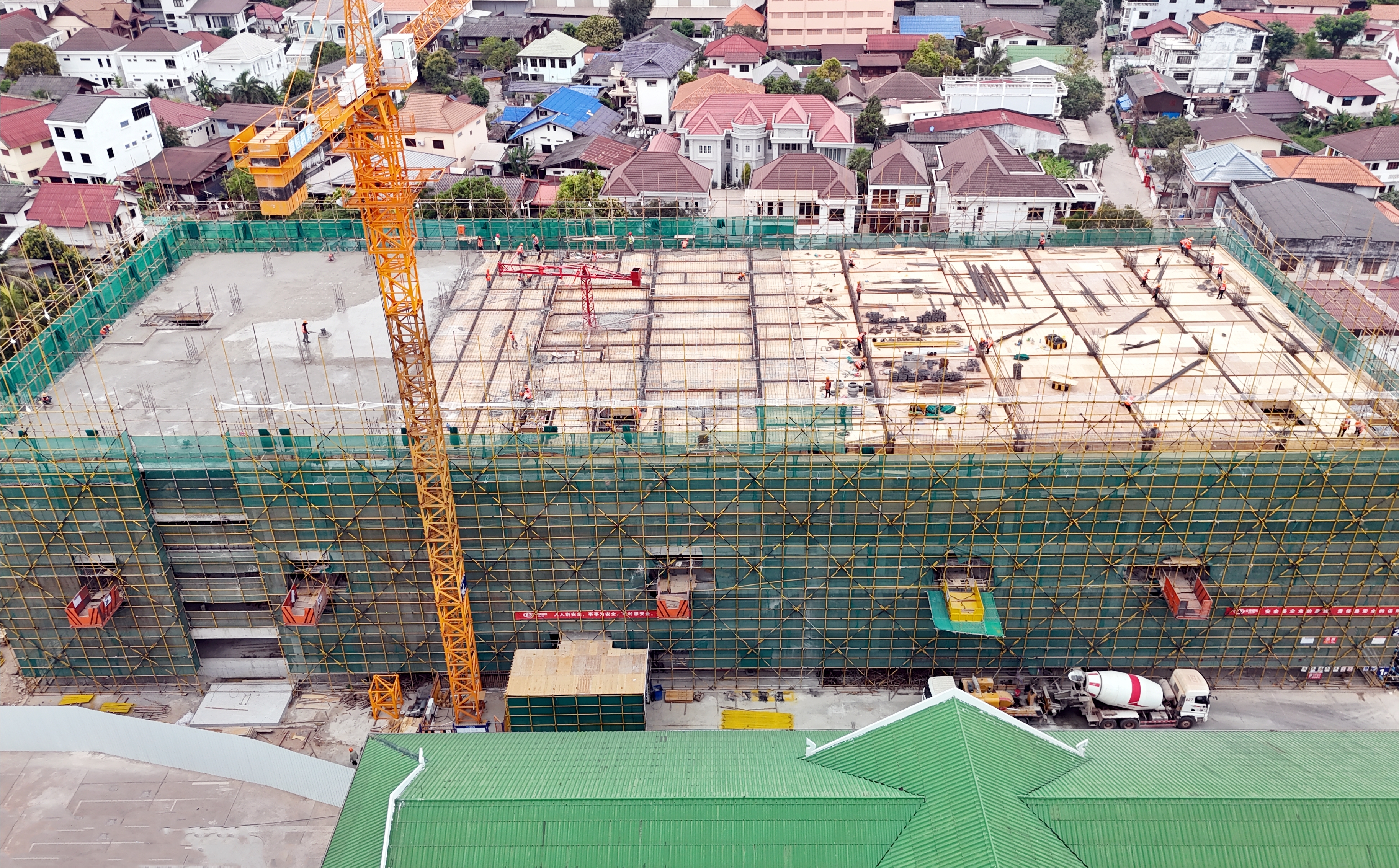 據悉,該項目位于老撾萬象市中心,總建筑面積約14.43萬平方米,為框架剪力墻結構,包含一棟主樓和一棟附樓。其中,主樓為155米超高層建筑,地下1層,地上42層,包含地上車庫和公寓酒店,建成后將成為老撾地標性建筑;附樓包含地上車庫、酒店餐飲、辦公樓會所等,為地上12層的建筑。目前,項目正進行主樓基坑工程和附樓主體工程施工。