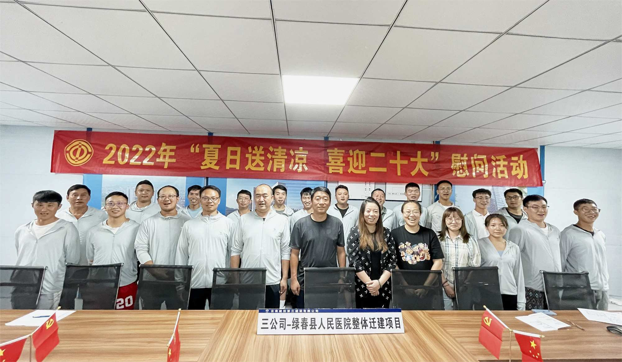 烈日炎炎,驕陽似火。7月28日,集團公司工會常務副主席周俊到第十二直管項目部承建的綠春縣人民醫院整體遷建項目設計施工總承包(EPC)開展“夏日送清涼 喜迎二十大”慰問活動。