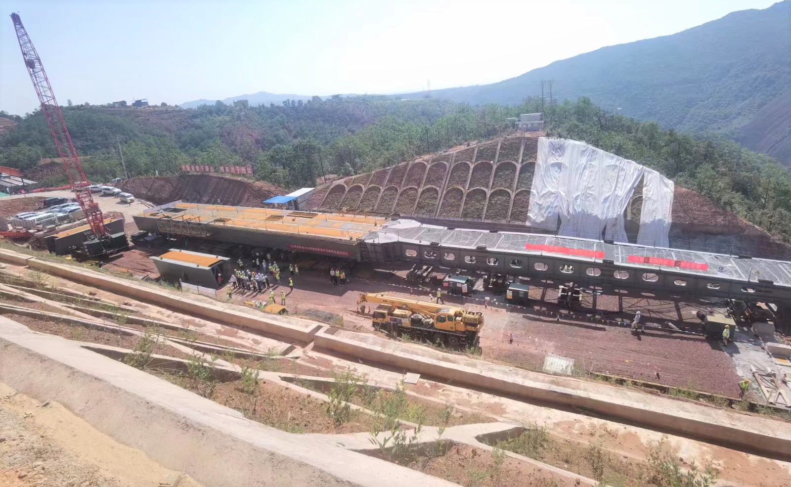 7月7日,由路橋市政直管二部承建的永金高速項目土建七分部陳家溝大橋完成首次鋼箱梁頂推作業,標志著全橋最關鍵的工序開始施工。