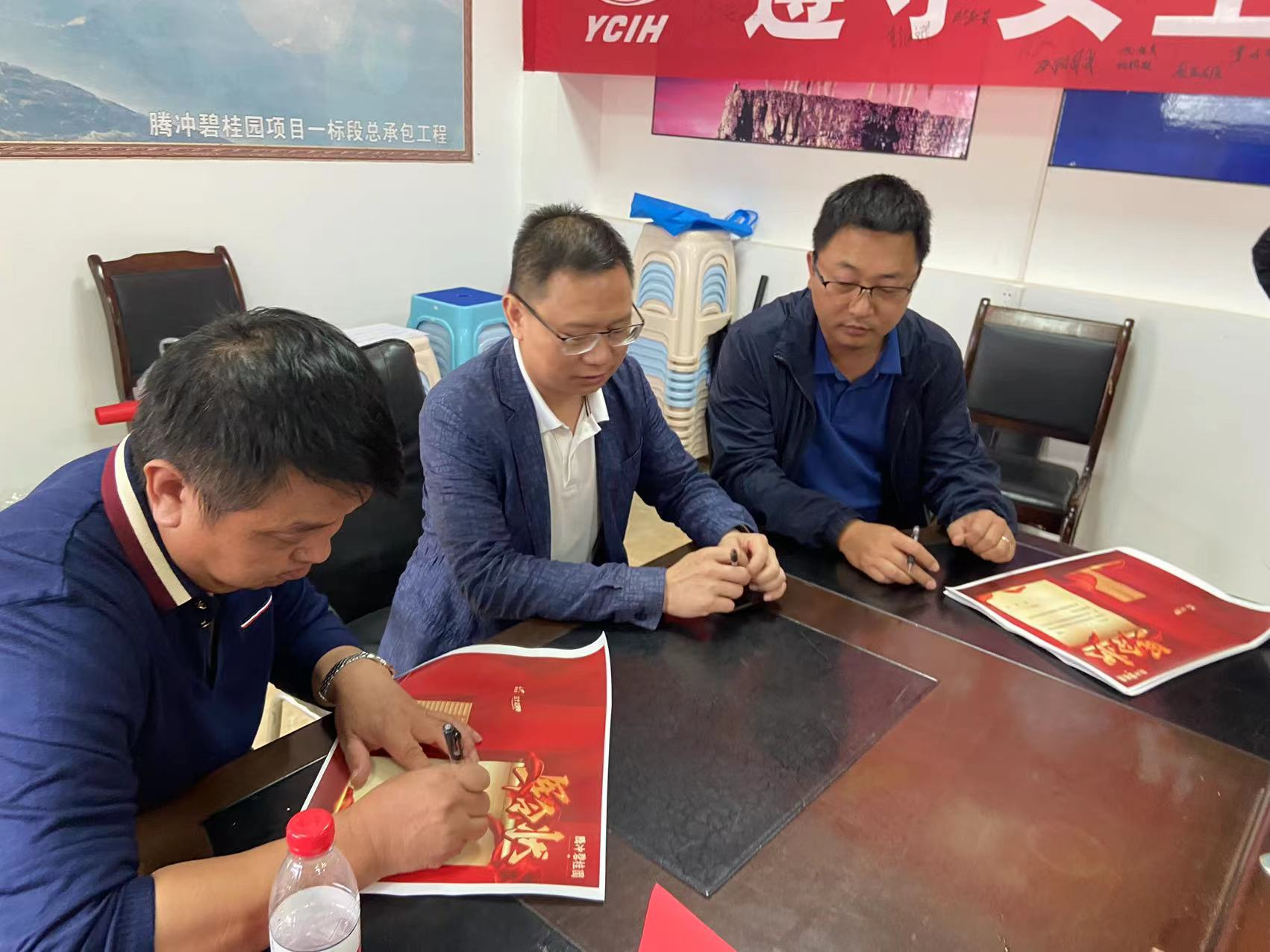 6月16日,第十九直管項(xiàng)目部承建的騰沖碧桂園項(xiàng)目召開“保交樓”軍令狀簽署大會(huì),公司總經(jīng)理助理姚繼紅、碧桂園區(qū)域副總裁馮自來參會(huì)。