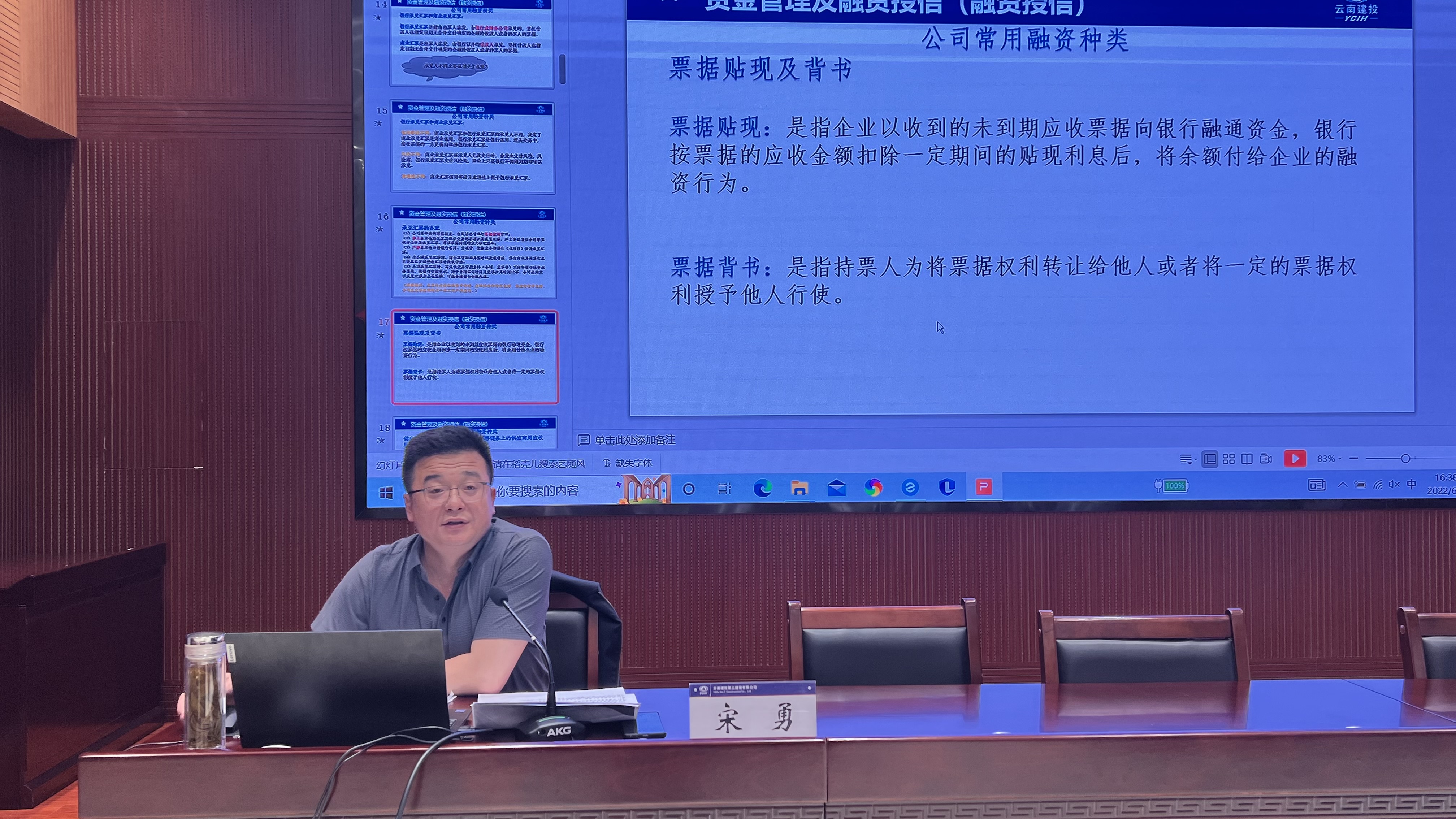 公司黨委書記、董事長彭云,財務總監宋勇,生產管理部、法律事務部相關業務人員分別就項目管理團隊建設、清欠及財務風控管理、項目策劃與實施、常見法律風險與防范措施等進行授課。此外,還邀請到集團人力資源部、昆明旭科工程造價咨詢公司、云南高通注冊安全工程師事務所、省交通廳質監局的資深實戰專家分別就農民工實名制及工資支付管理、工程計量與計價、工程臺賬、合同管理、安全管理暨“平安工地”創建、高速公路隧道工程技術與質量管理進行講授。