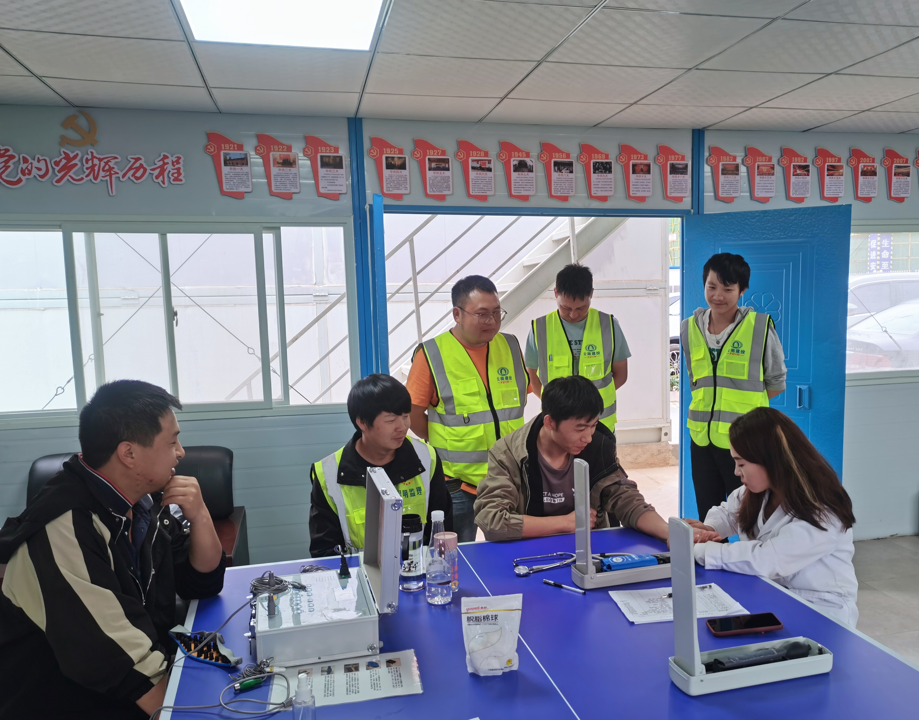 近日,第十九直項目部邀請廣東省復康中醫學研究院中醫醫務人員,到昆明卷煙物流工商一體化建設項目開展為期一周的義診活動,讓施工一線人員足不出戶就可以享受免費的中醫診療和健康服務。