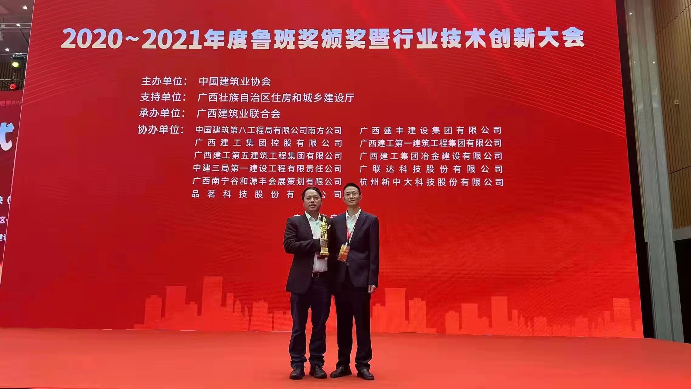 11月25日下午,2020—2021年度魯班獎頒獎暨行業技術創新大會在廣西南寧召開,公司技術質量部、第二直管項目部代表參加會議,領取昆明規劃館項目魯班獎“小金人”。昆明規劃館項目以努力建設成為“國際先進、國內一流”的規劃展示館為目標,從設計到施工、從主體到裝修均以高起點、高標準推進。項目建設以精細化貫穿始終,通過技術創...